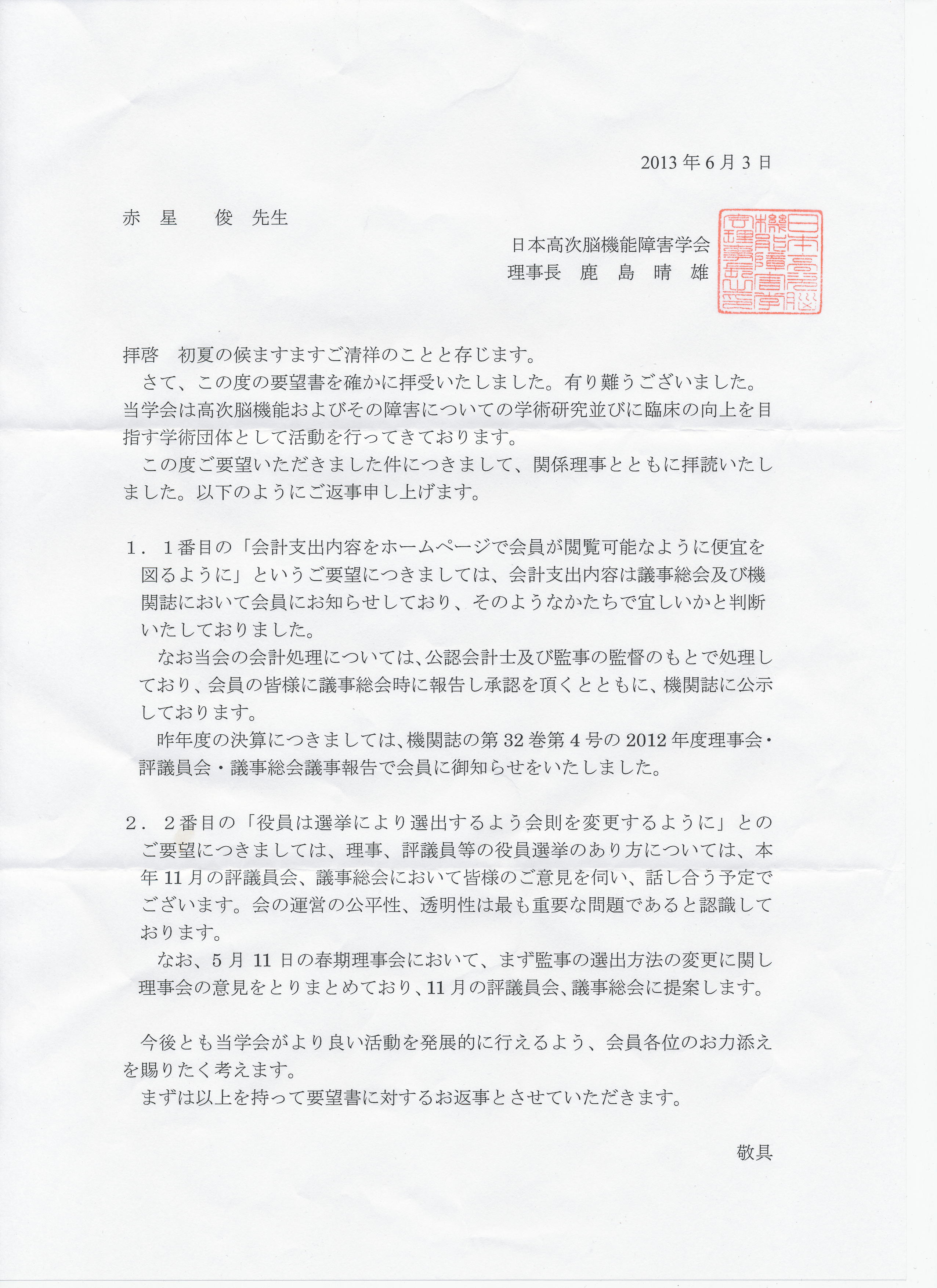 要望書 回答書 回答受取書 法人化は公論に決すべし 「伝導失語」書評