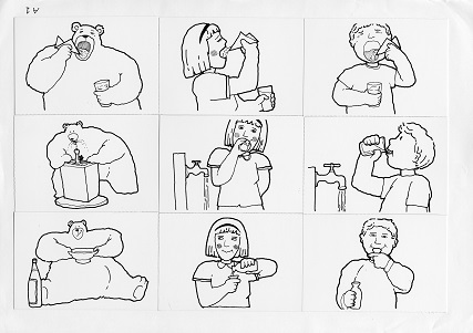 このビデオを見ながら復唱し模写する訓練を1日2回3週間続けると早期に学習が可能です。